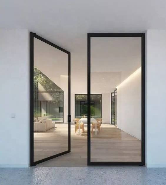 WDMA Modern Designs Black White Grey Red Interior Carbon Steel Frame Tempered Glass Panel Swing Doors